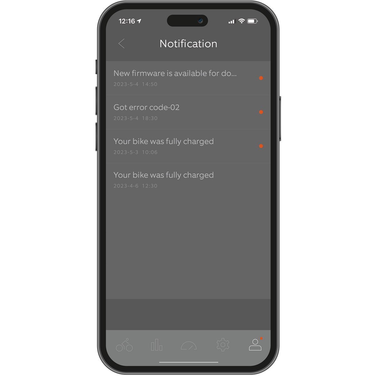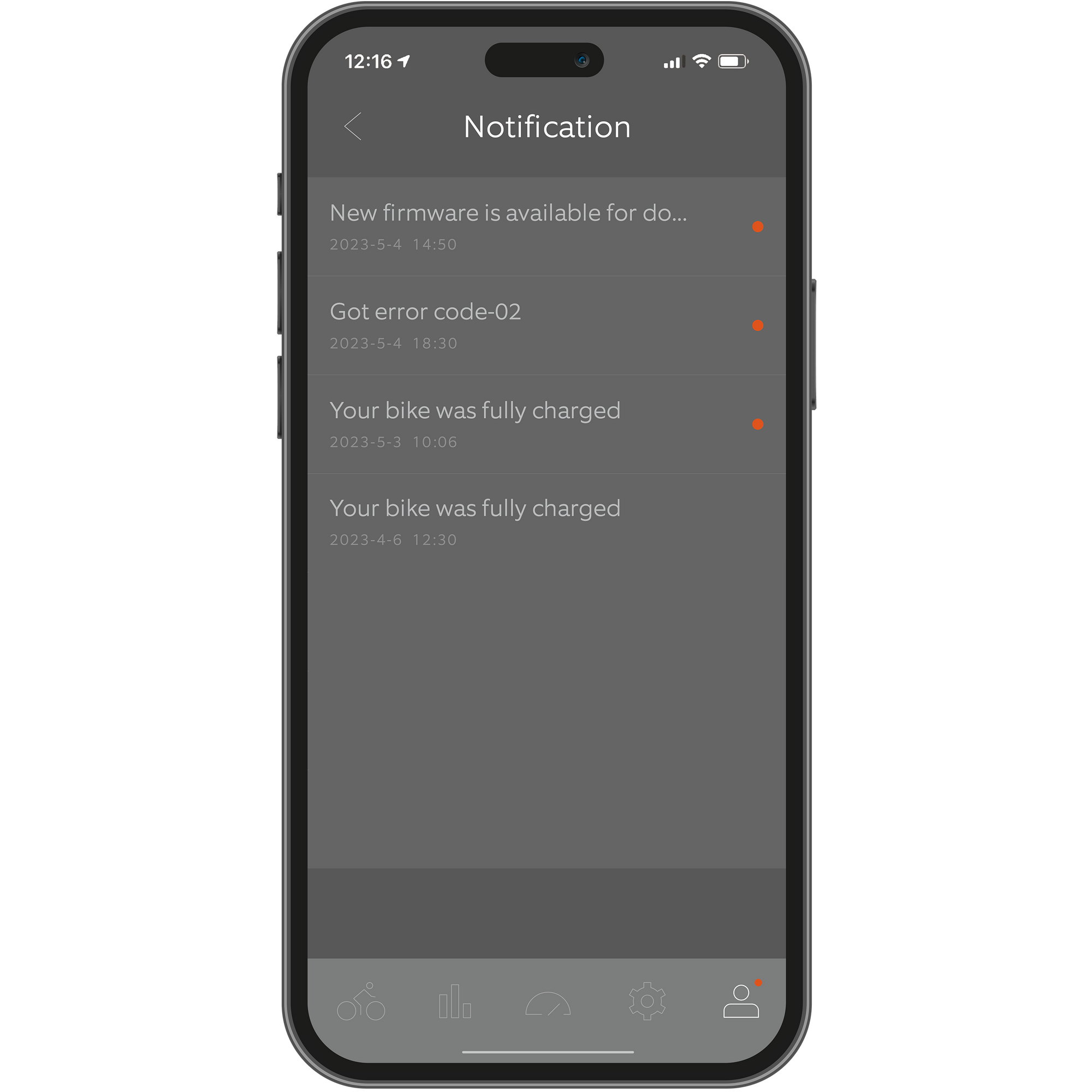 Nachdem das Fahrrad über Bluetooth verbunden wurde, werden der gesamte Systemstatus mit der App synchronisiert und wichtige Nachrichten angezeigt, darunter eine Benachrichtigung bei vollständiger Ladung, ein Firmware-Optimierungsupdate usw.